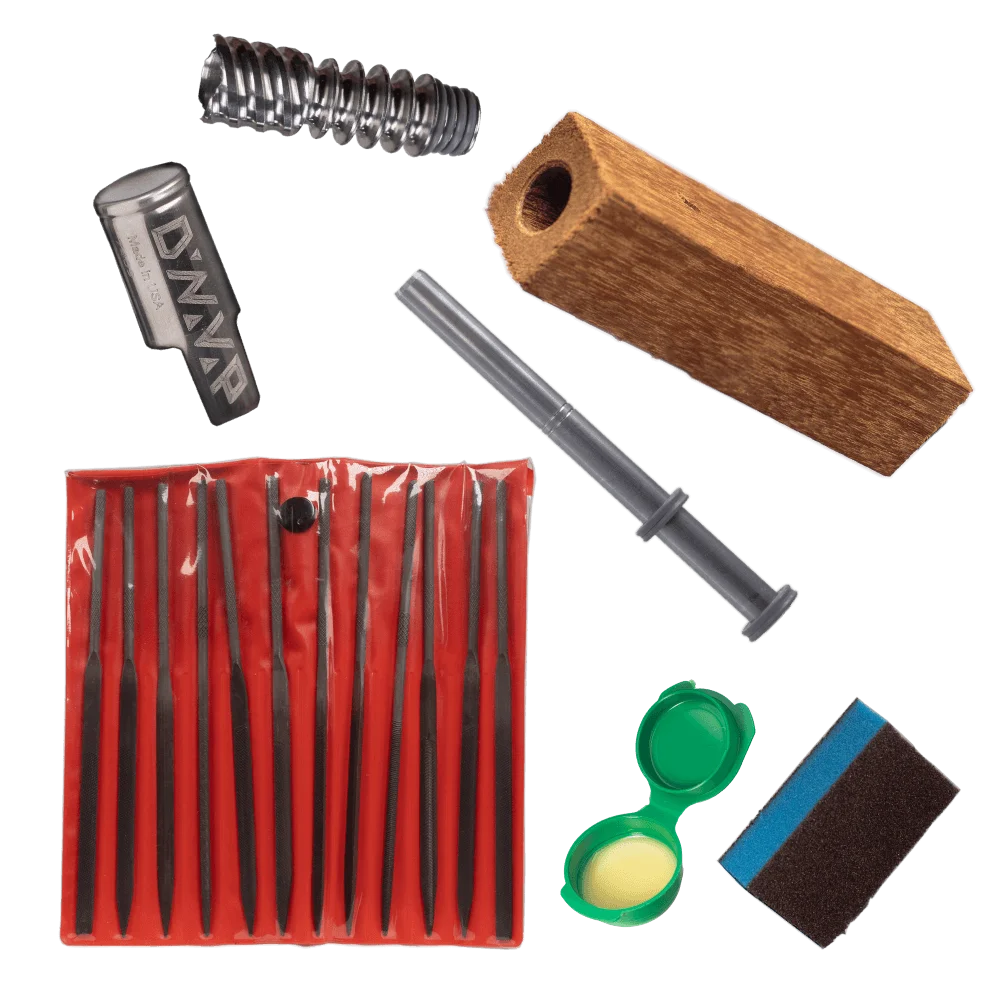 Kit contains Stem blank with precision bore and air port. Also included are a Cap, Titanium Tip and standard condenser with o-rings to make your canvas a fully functioning VapCap and DynaWax to keep it pristine. We’ve also included a set of 12 precision needle files and a sanding sponge to kick start your creative journey!