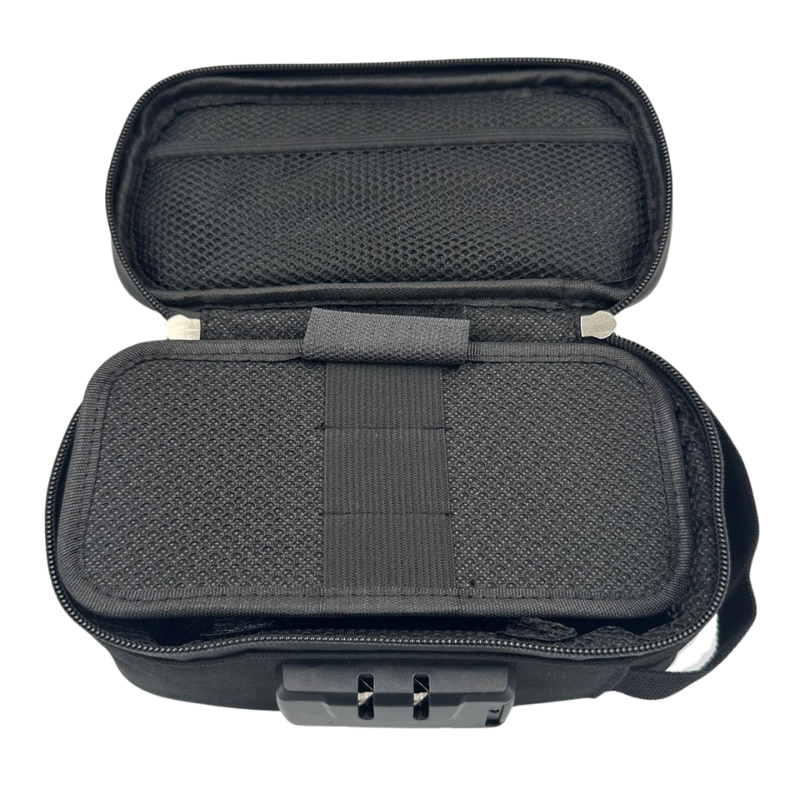 A practical and durable storage case designed for a vaporizer and its accessories. It keeps your equipment organized, protected, and easy to carry wherever you go. The case features a built-in combination lock, allowing you to set your own code for additional security.