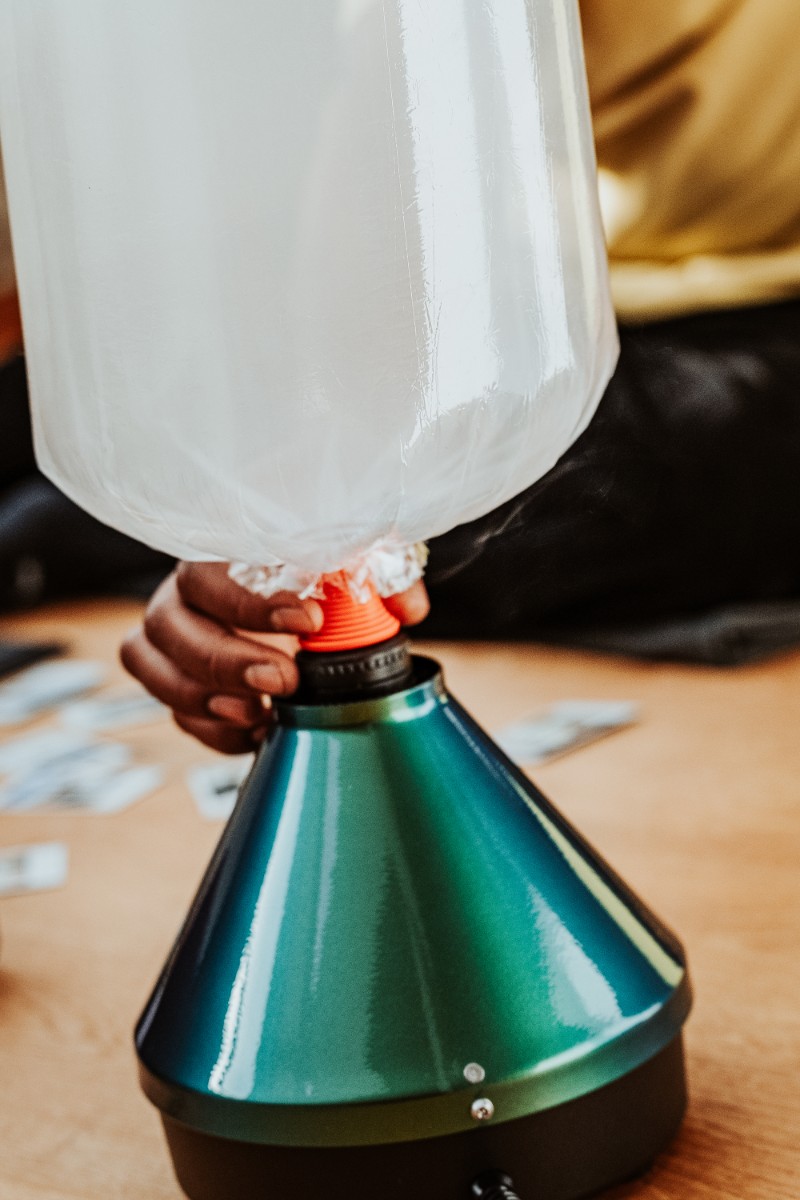 The vapor is collected in the signature EASY VALVE balloon, which can be detached and used freely—no cables, no rush.